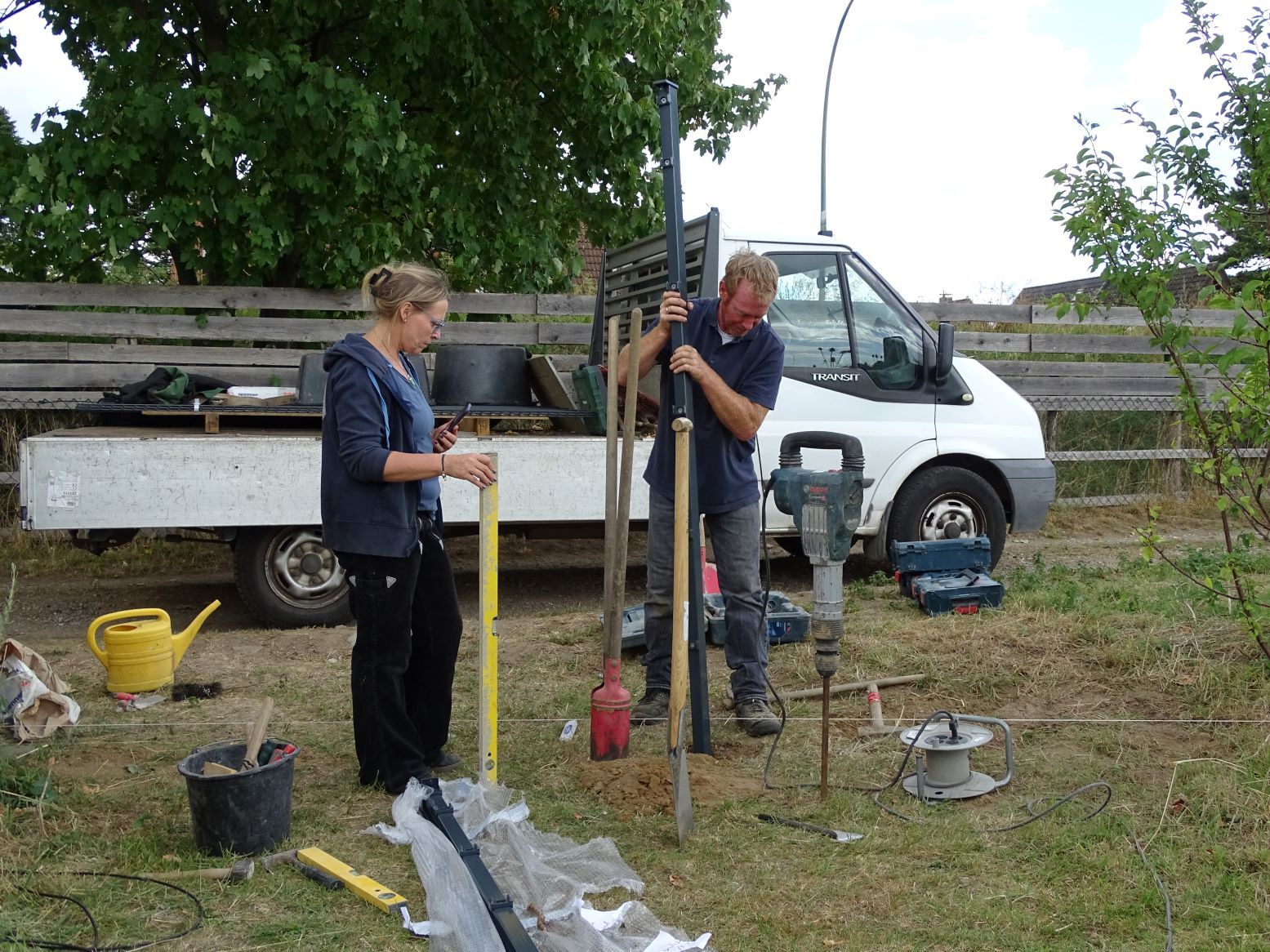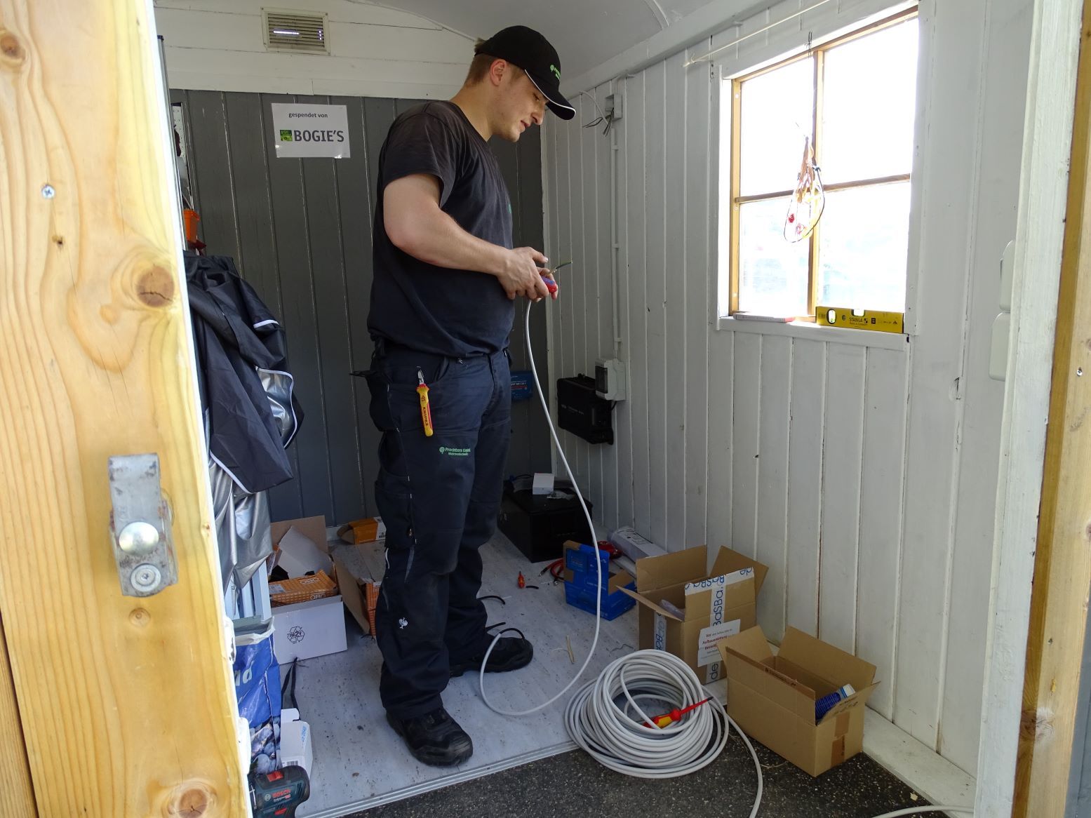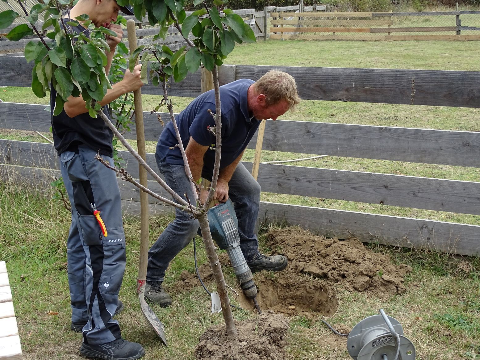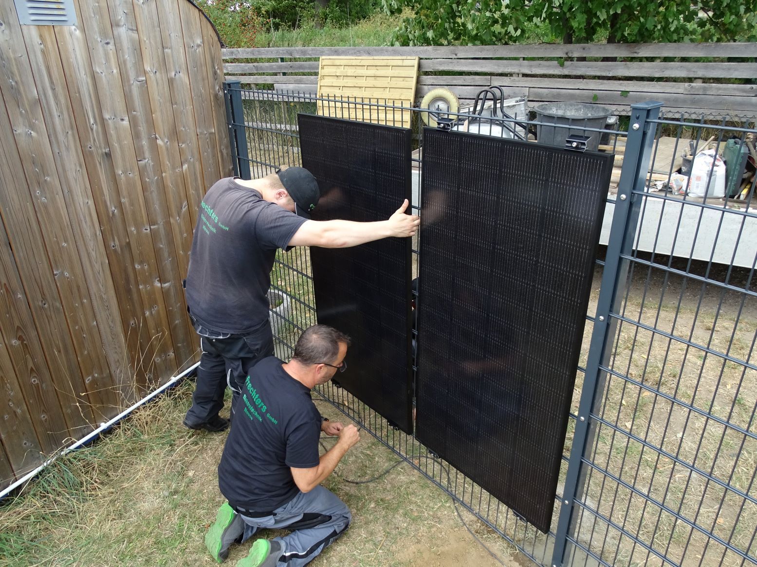 Um für eine bessere Versorgung mit Strom zu sorgen und ihn dorthin zu bringen, wo er benötigt wird, hat der Neusser Handwerk e.V. an der Hütte im Begegnungsgarten ein nachhaltiges Inselkraftwerk mit Solarpanelen installiert, so dass der benötigte Strom vor Ort selbst erzeugt werden kann. Um die später geplante Außenküche und das Kraftwerk etwas zu schützen wurden zudem zwei Gartenzaunelemente verbaut, an denen dann auch die Solarpanele entsprechend montiert und ausgerichtet werden konnten. Außen und in der Hütte wurde auch noch für Beleuchtung und Stromanschlüsse gesorgt, damit dieser Platz auch abends oder insbesondere auch in der dunkleren Jahreszeit genutzt werden kann. Das Inselkraftwerk sowie alle anderen Materialien wurden vom Neusser Handwerk e.V. gespendet und die Arbeiten von den Mitgliedern der Elektro Prechters GmbH (Jochen Prechters und zwei Auszubildende) sowie Michael Heuschen Garten- und Landschaftsbau kostenlos erledigt. Zudem freuen sich die Leiterin der Arche Noah Michaela Danker und Esel Benito über eine Tierpatenschaft, die der Neusser Handwerk e.V. ebenfalls übernommen hat.